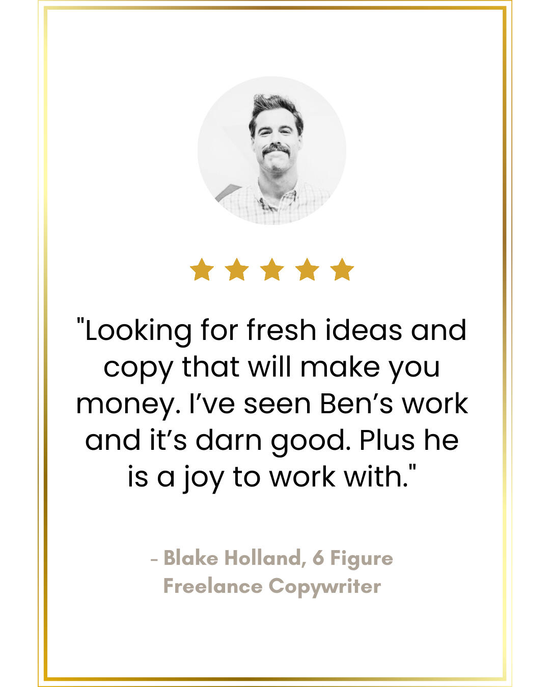 10 years ago I was running music tours and summer music festivals, now I write words for a living.My 20s were a blur, by the end it felt like I was living a soulless existence.This led me onto a new path, littered with many false starts and failed ventures.Throw in a hell of a lot of soul-searching. Not an easy road, but one I wouldn’t change.I had a choice: “Sink or Swim” I chose to swim…Finally, I took the plunge into the world of copywriting.I’ve been writing advertising ever since.To date, I have written for local coffee shops to 8 figure coaching companies.My 30s are the polar opposite of my 20s, cleaning living and helping businesses like yours crush competition.